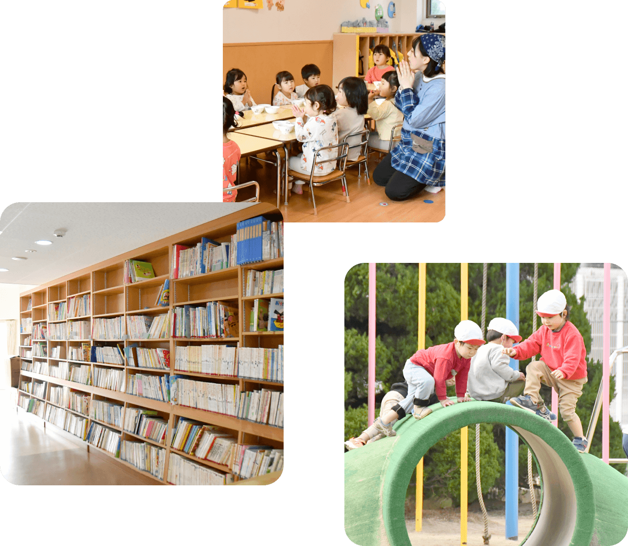 「登園時のあいさつで始まり、降園時のあいさつで終わる。」をモットーに、お友だちや先生との関わりの中で、人とのコミュニケーション能力を育みます。